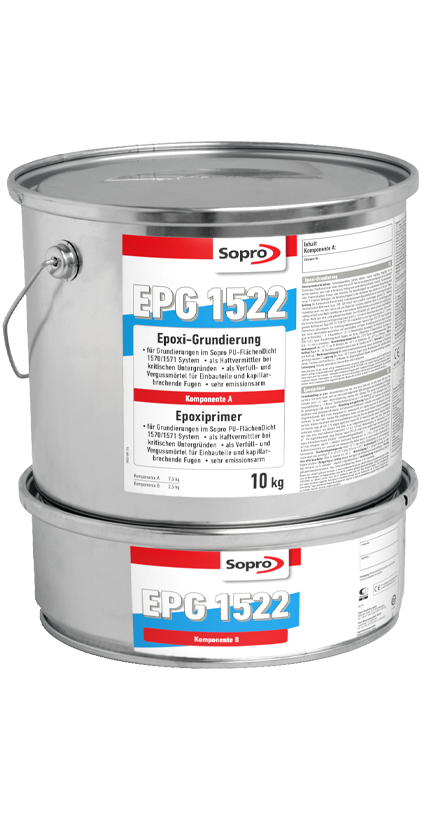Emissionsarmes, unpigmentiertes, zweikomponentiges Epoxid-Flüssigharz. Als Grundierung zum Verfestigen von sandenden, mineralischen Untergründen sowie als Haftvermittler auf glatten Untergründen wie z. B. Metall, Gussasphalt und alten Anstrichen. Als Grundierung von Calciumsulfatestrichen bei der Verlegung von großformatigen Platten. Das Abstreuen der frischen Grundierung erfolgt je nach nachfolgendem Auftrag mit Sopro Quarzsand fein oder grob. Zum Versiegeln und kapillaren Abdichten von zementgebundenen Untergründen, zur Rissverharzung, zum Vergießen von Fugen bei Rinnen und Bodenabläufen, zur Herstellung kapillarbrechender Fugen. Wasser-, seewasser-, abwasserfest sowie beständig gegen Laugen, verdünnte Säuren, Salzlösungen, Mineralöle, Schmier- und Treibstoffe. Als Kapillarversiegelung von feuchten, zementären Untergründen zur schnellen Verlegung von Parkett, PVC o. Ä.