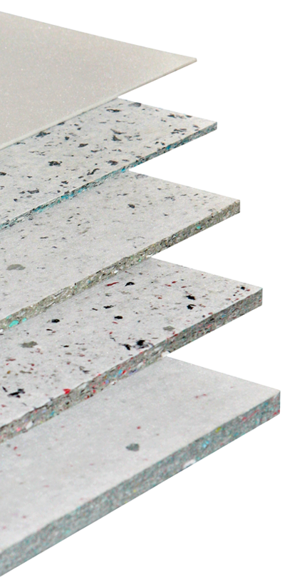Kunstharzgebundene und verrottungssichere Polyesterfaserplatte zur Trittschall- und Wärmedämmung im Verbund mit Keramik- und Naturwerksteinbelägen auf kritischen oder verformungsfähigen Untergründen.
