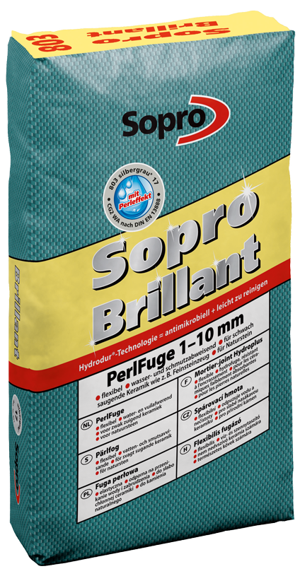 Zementärer, schnell erhärtender, flexibler, wasser- und schmutzabweisender Fugenmörtel, CG2 WA nach EN 13888, mit Perleffekt zum Verfugen von keramischen Belägen, Betonwerkstein und allen Arten von Naturwerkstein sowie von Glasmosaik, mit sehr guten Verarbeitungseigenschaften. Auch geeignet auf Wand- und Fußbodenheizungen. Die feine und glatte Fugenoberfläche ergibt ein lang anhaltend schönes Fugenbild. Für den Schwimmbadbereich empfehlen wir Sopro TitecFuge® plus und breit, Sopro DesignFugenEpoxi oder Sopro FugenEpoxi.