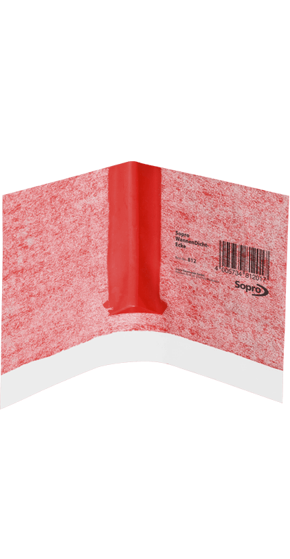 Flexible, selbstklebende, beidseitig mit einem speziellen Vliesgewebe beschichtete Wannendichtecke aus hochwertigem Polypropylen. Innenecke mit flexibler Dehnzone. Zur wasserdichten Anbindung von Dusch- und Badewannen in die Flächenabdichtung. Mit dem Sopro WannenDicht-System lassen sich eine Vielzahl von anspruchsvollen Einbausituationen, wie barrierefreie oder aufliegende Duschwannen sowie Badewannen, leicht realisieren.